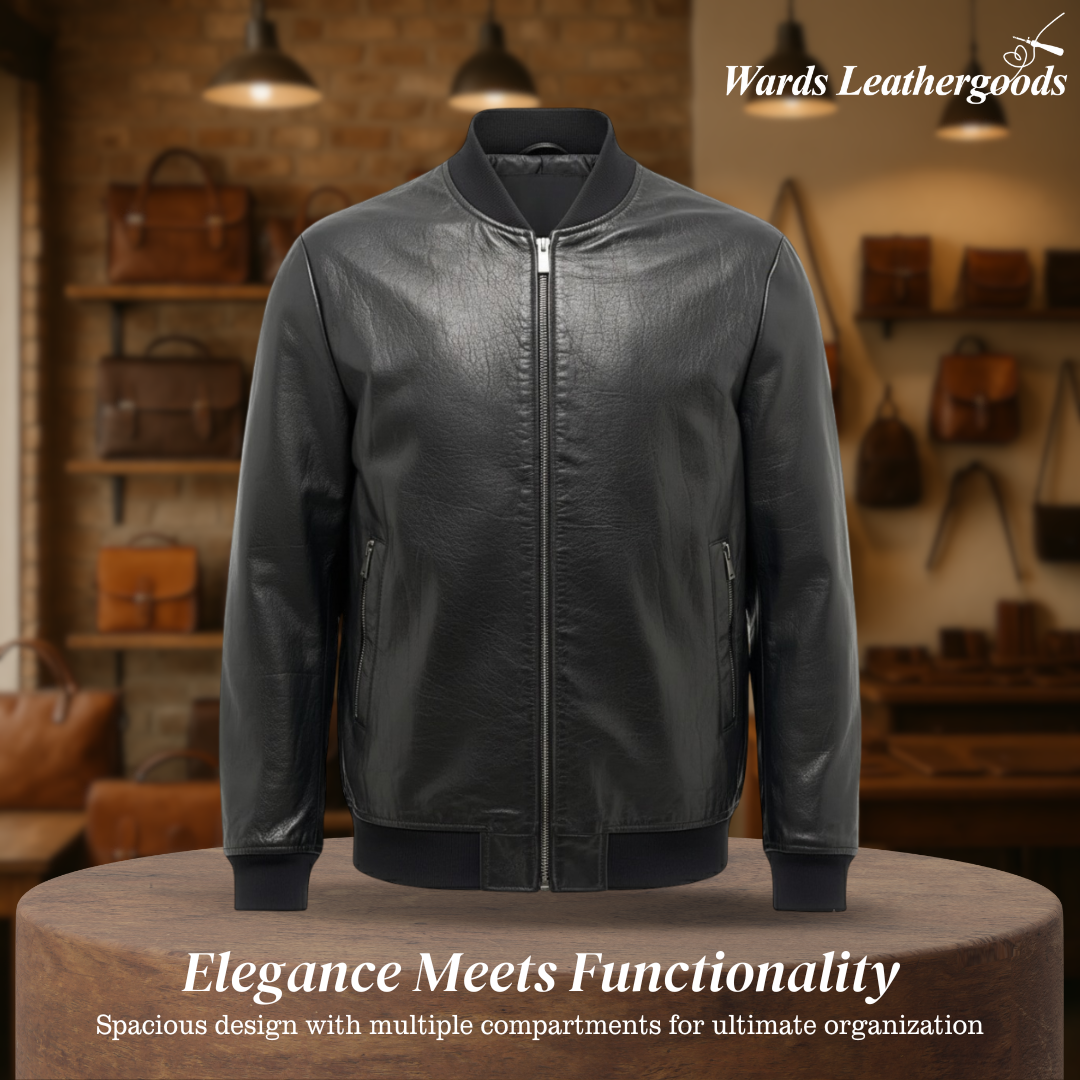 Raymund | Zip-Up Black Bomber Leather Jacket