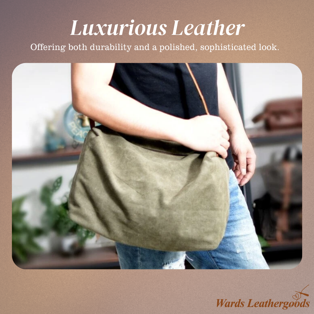 This duffle bag combines rugged canvas with leather details, creating a timeless look. Its versatile shape makes it ideal for everyday use, short trips, or carrying gear with ease.