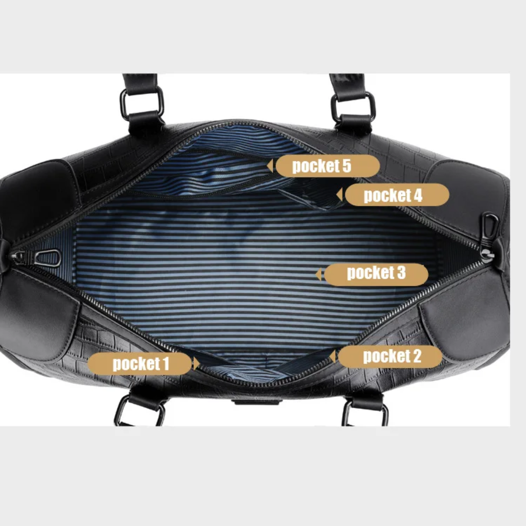 Inspired by timeless design and crocodile-texture, this duffle brings structured style to every journey. It balances bold elegance with functional travel-ready structure for classy getaways or everyday commutes.