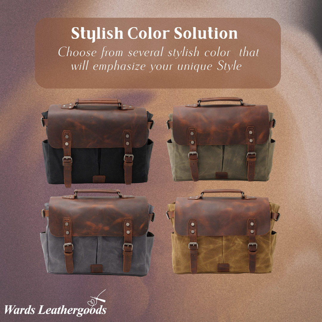 This messenger bag blends durable canvas with genuine leather for a classic, rugged look. The leather flap and accents elevate its style, making it perfect for both casual and professional settings. Built to last, it provides a timeless appeal.