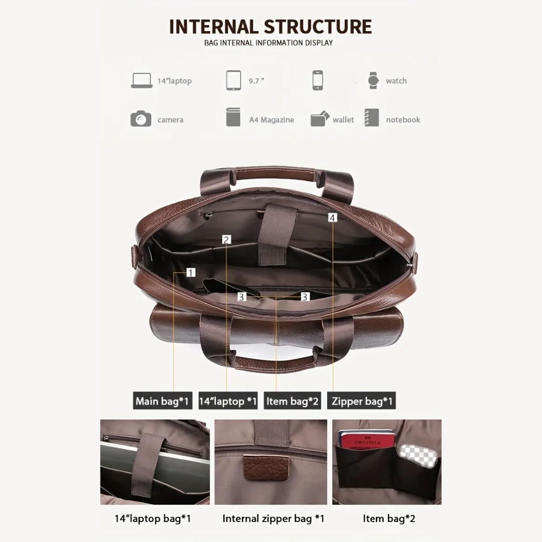 • Multiple Compartments: Keeps laptop, documents, and accessories organized.