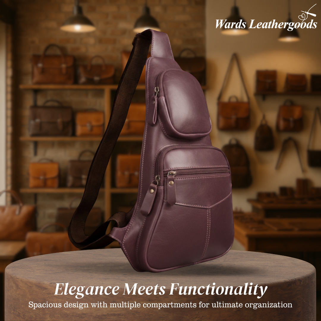 This leather sling bag combines style with durability, ideal for everyday use. Its sleek design offers a hands-free solution while keeping your essentials secure. The high-quality leather ensures it lasts through daily wear and tear.